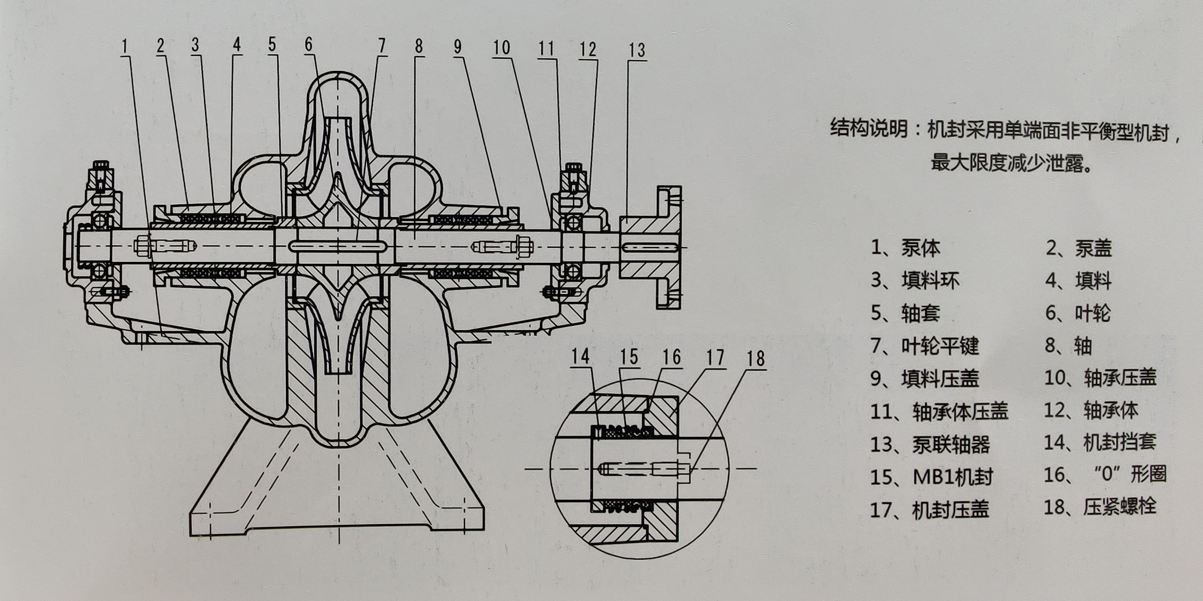 1、釆用優質機械密封,注入式軟填料密封結構通用,互換性好,不銹剛軸套,避免銹蝕,維護方便,填料空間大,更換維護方便。